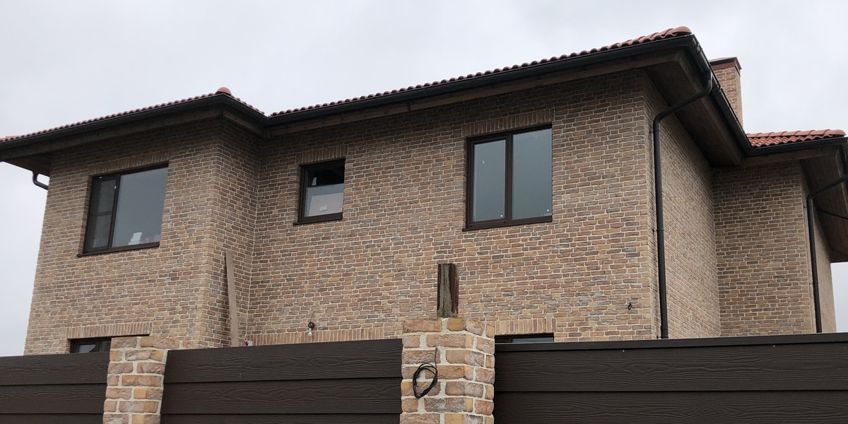 При строительстве использовался микс кирпичей ручной формовки «Крюйс», «Вейде» и «Ганнибал»