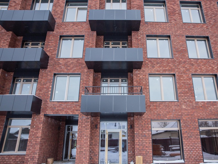 При строительстве использовался кирпич ручной формовки "Аврора" и "Монс" формата WDF (210х100х65). Кирпич на данный жилой комплекс производился по спецзаказу - синие пятна нанесены на горизонтальную поверхность кирпича, что обуславливает его специфическую кладку.